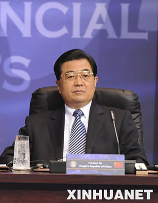 11月15日,中國(guó)國(guó)家主席胡錦濤在華盛頓出席二十國(guó)集團(tuán)領(lǐng)導(dǎo)人金融市場(chǎng)和世界經(jīng)濟(jì)峰會(huì)。 新華社記者 樊如鈞